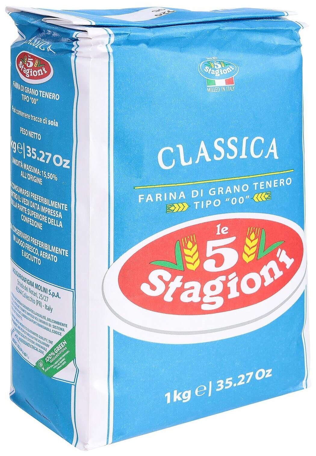 Мука «Классика» Le 5 Stagioni мелкого помола производится из мягких сортов пшеницы, очищенная от примесей. Из этой универсальной муки можно приготовить пиццу, пельмени, блины, пироги, хлеб. Подходит для теста с длительным периодом ферментации.