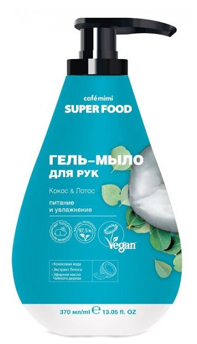 Гель-мыло для рук Cafe Mimi Super Food Кокос & Лотос 370мл