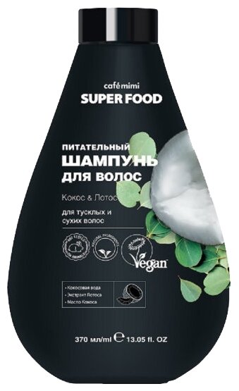 Шампунь для волос Cafe Mimi Super Food Кокос & Лотос 370мл