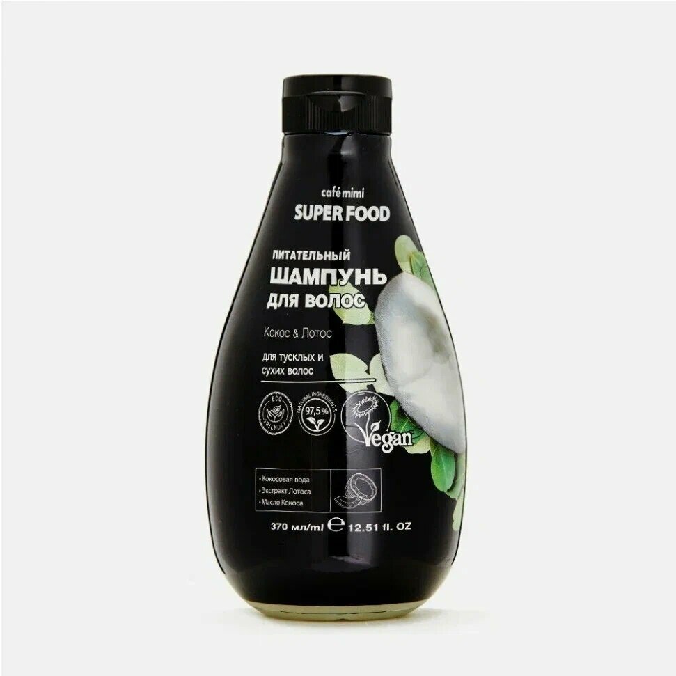 Сервис сравнения цен СкидкаГИД предлагает сравнить цены на товар «Шампунь для волос Cafe Mimi Super Food Кокос & Лотос 370мл»