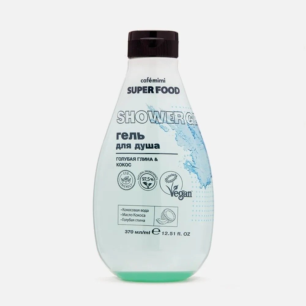 Гель для душа Cafe Mimi Super Food Голубая глина & Кокос 370мл