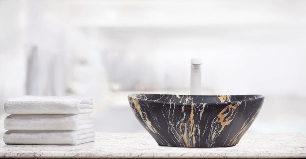 WW ELBACH 3078 K514 Раковина накладная (мрамор черная с бежевым) 410х335х145