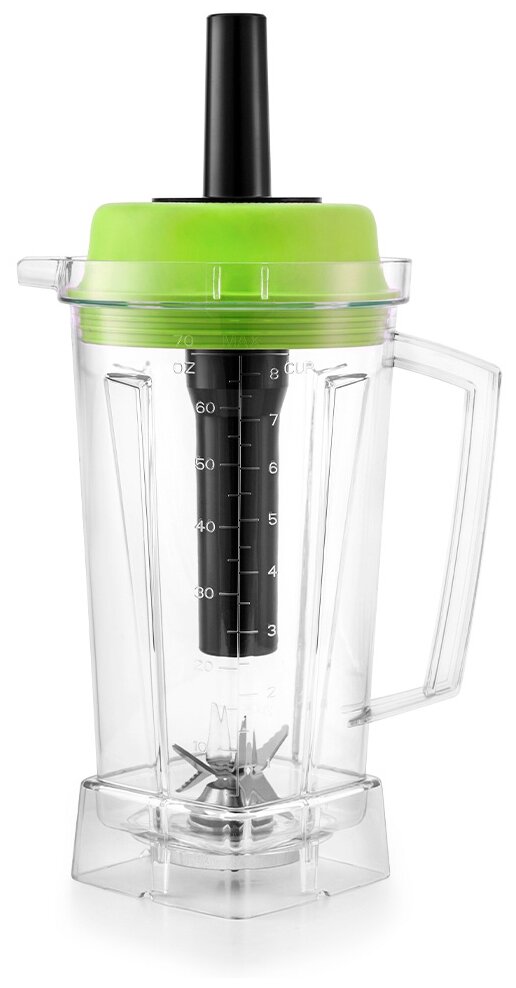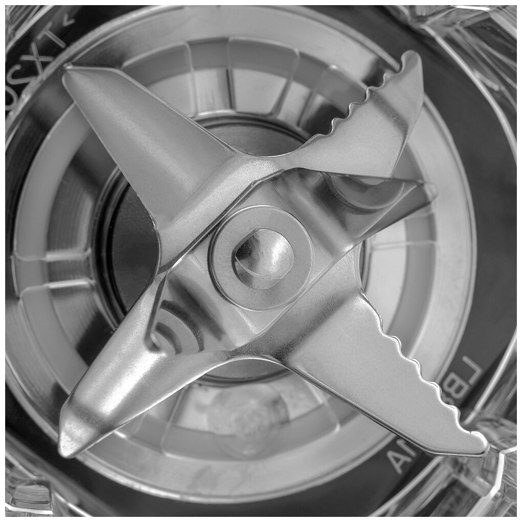 Для измельчения продуктов прибор имеет шестилезвийный нож из нержавеющей стали. Чаша блендера 2 литра изготовлена из прочного и безопасного тритана. В крышке имеется отверстие для добавления ингредиентов в процессе работы. Надежное и устойчивое положение на кухонной поверхности обеспечивают противоскользящие ножки.