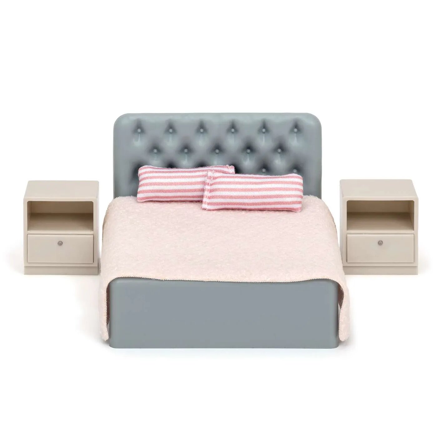 • Рекомендуется для мальчиков и девочек. • Возрастные рекомендации: от 3 лет. • Набор представлен игрушечной мебелью для кукол высотой 10-12 сантиметров. • Элементы выполнены в виде роскошной серой 2-х спальной кровати с прикроватными тумбочками и аксессуарами для создания уюта. • Прикроватные тумбочки с открывающимися ящиками. • Кроватка дополнена текстильными постельными принадлежностями: 2-мя подушками и пледом. • Гарнитур станет украшением спальни в кукольном домике и подарит ребенку возможность расширить границы сюжетно-ролевых игр с куклами. • Все элементы имеют реалистичный дизайн и являются уменьшенными масштабными копиями реальной мебели в пропорции 1:18. • Все элементы выполнены с высокой степенью детализации, качественно и аккуратно. • Украшая комнаты кукольного домика мебелью и делая его интерьер более уютным, ребенок сможет проявить творческие способности, креативность и художественный вкус. • Правдоподобные сюжетно-ролевые игры с куклами способствуют развитию воображения и фантазии, способствуют социализации ребенка, помогают развивать логическое мышление и моторику рук. • Элементы набора выполнены из износостойкого текстиля, качественного и прочного пластика, окрашенного безопасными для здоровья ребенка красками. • Комплект гармонично сочетается с кукольными домиками, наборами мебели и куклами от данного производителя. • Комплект: 2-х спальная кровать, 2 прикроватные тумбочки, 2 подушки, плед.