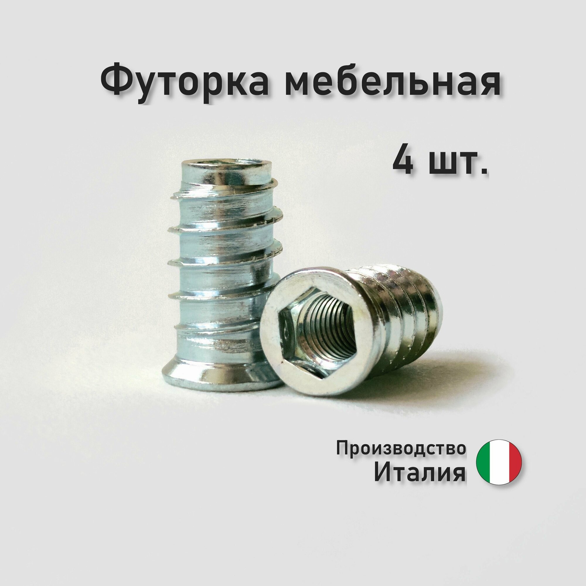 Мебельная футорка — это соединительный резьбовой элемент в виде втулки с метрической внутренней резьбой и шурупной наружной резьбой. Хорошо подходит для соединения сложных плоскостей, при сборке мебели из ДСП, МДФ и мягких пород древесины.
