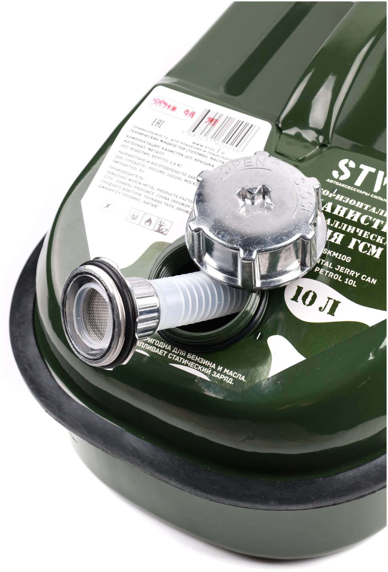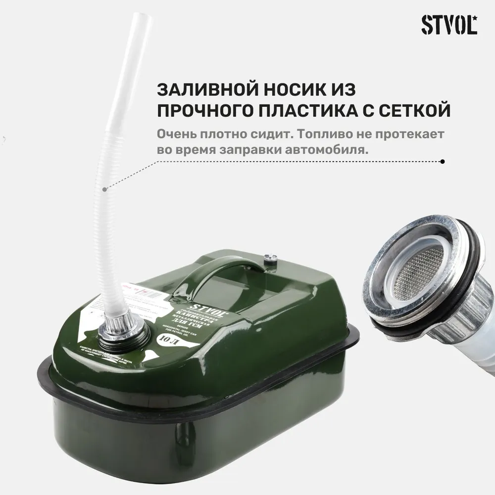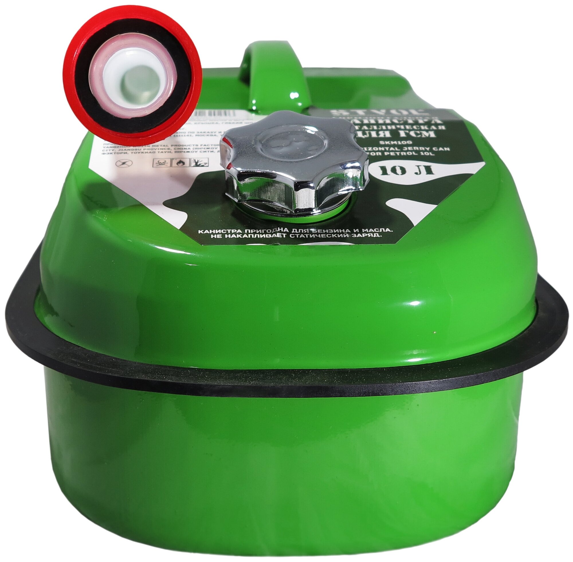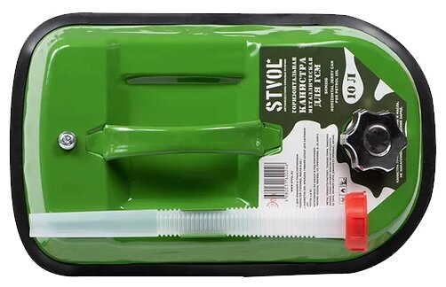 Канистра для ГСМ Stvol металлическая 10 л Предназначена для транспортировки и хранения технических/горючих жидкостей. Горизонтальная канистра имеет устойчивую форму, полностью исключая опрокидывание. Комплектуется металлической крышкой с резьбой и специальным пластиковым носиком, облегчающим процесс заправки автомобиля. Внешний вид и/или характеристики товара могут быть изменены производителем в соответствии с производственным процессом.