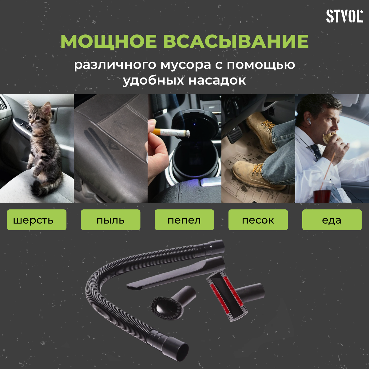 Автомобильный пылесос Stvol станет Вам незаменимым помощником во время уборки салона автомобиля. Удобный шланг и насадки для различных поверхностей и труднодоступных мест выгодно выделяют его среди конкурентов. Съемный фильтр пылесоса выполнен из качественного материала HEPA, который открывает доступ к влажной уборке! Питание пылесоса осуществляется через бортовую сеть автомобиля от прикуривателя. Длина кабеля питания 3 метра, что позволит дотянуться до любых участков уборки в Вашем автомобиле. Мощность пылесоса – 120 Вт. Совокупность всех характеристик автомобильного пылесоса Stvol SPS100 делает его безоговорочным лидером на рынке автомобильных принадлежностей.