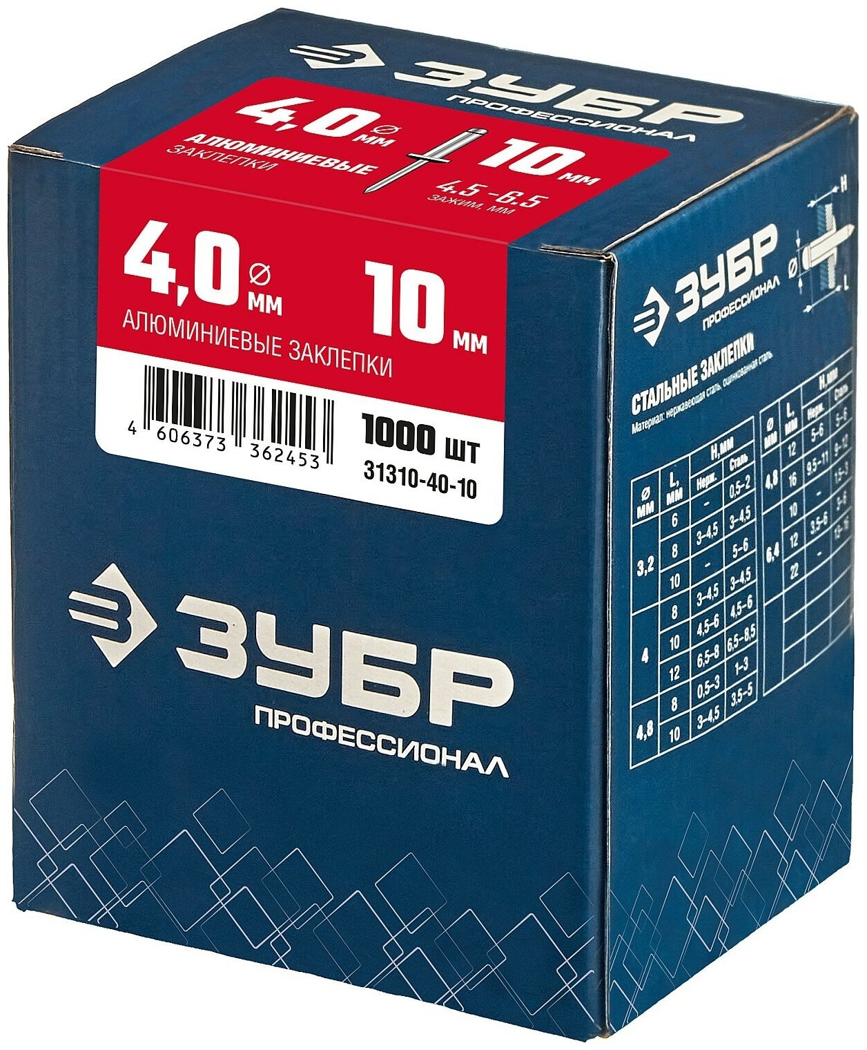 Алюминиевые заклепки ЗУБР 4.0х10мм (31310-40-10) 1000шт.