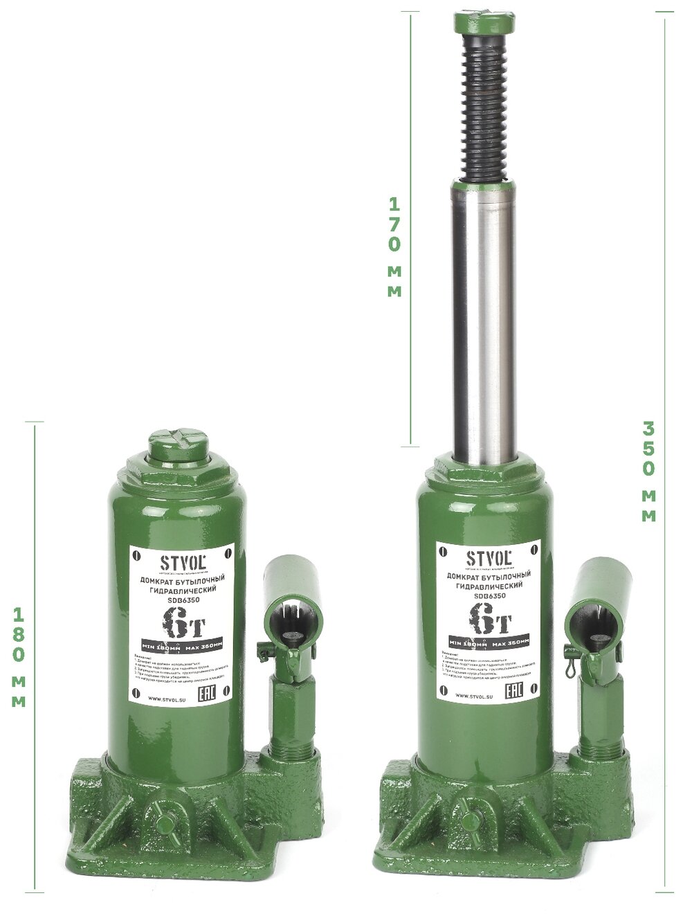 Гидравлический бутылочный домкрат STVOL предназначен для подъема груза массой до 6 т. Является незаменимым инструментом при работе в автосервисе, при ремонте автомобиля, используется при ремонтно-строительных работах.