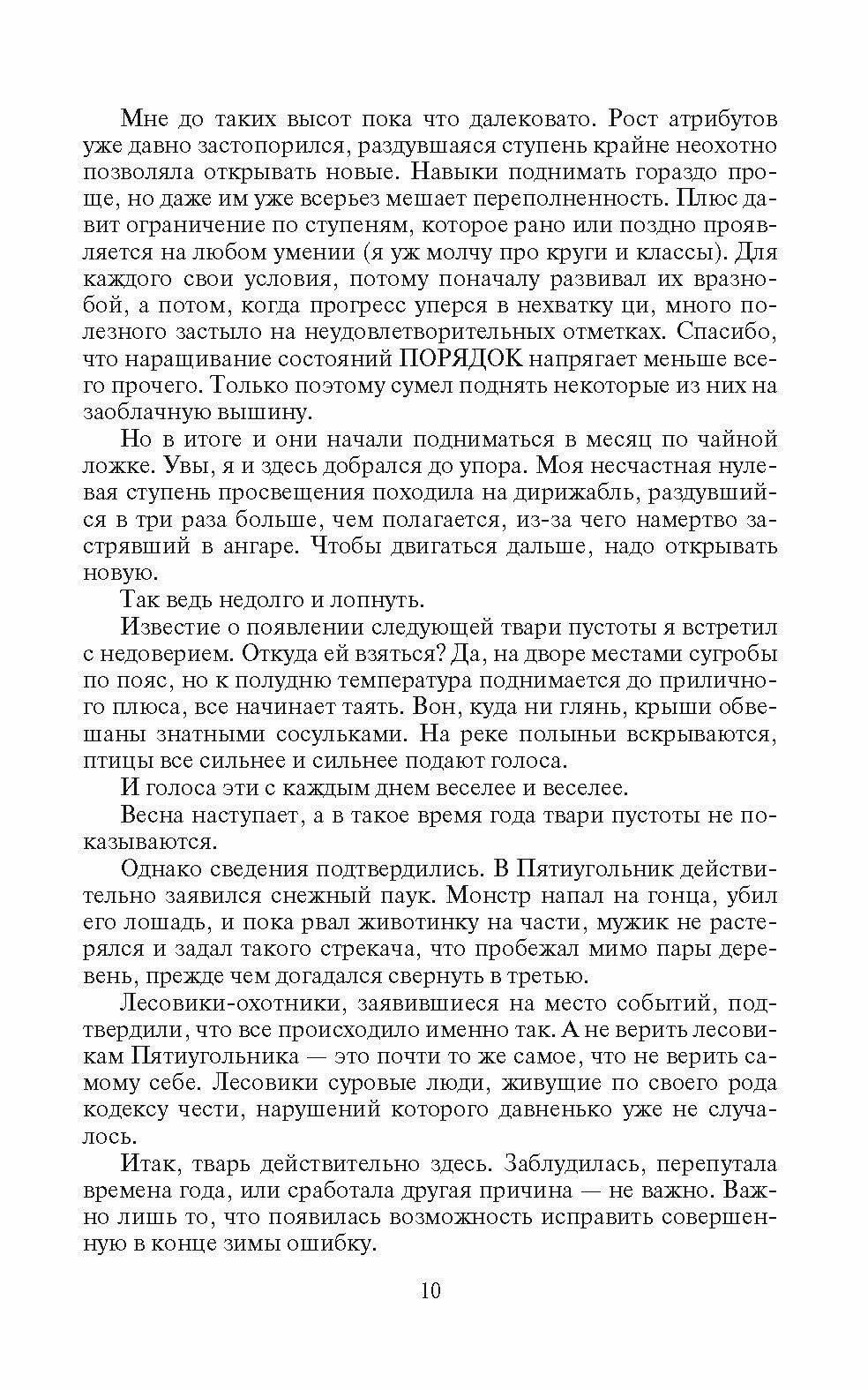Если убрать ровно половину страниц (всю словесную никчемную лабуду), то книга получится интересной, много динамики, развитие гг, невероятные монстры. Но когда описание характеристик гг занимает от 6 до 8 листов, то все очарование книги испаряется, остаётся только досада. Наверно, как написали вышестоящие авторы, это и есть непередаваемый и хорошо запоминающийся стиль автора – побольше словоблудия при минимуме действия