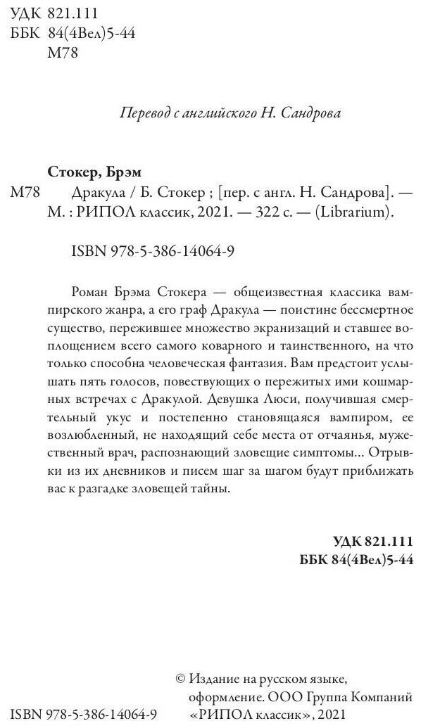 Книга: Дракула (Стокер Брэм); РИПОЛ классик Группа Компаний ООО, 2021