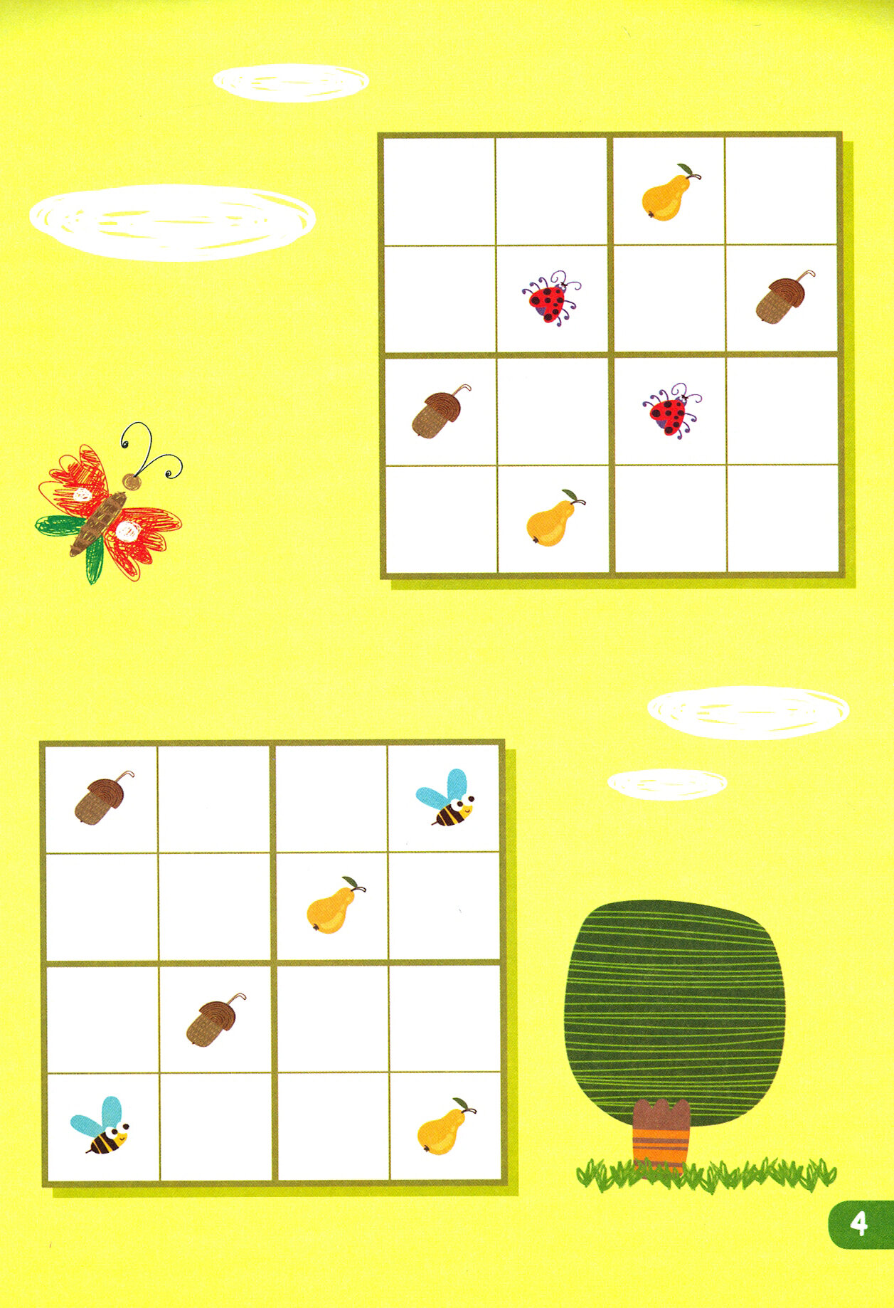 Первые страницы начальная сложность -квадрат на 4 ячейки , далее уровень сложности повышается. В конце книги даны ответы.