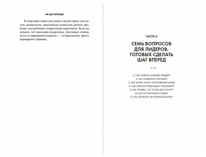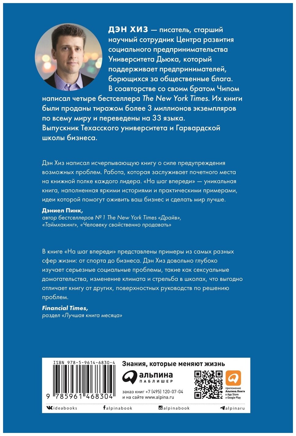 Всем известно, что профилактика болезни обходится дешевле, чем лечение, а проблему проще предотвратить, чем бороться с ее последствиями. Дэн Хиз рассказывает, как предугадать грядущие проблемы до того, как станет слишком поздно. Он взял сотни интервью у выдающихся лидеров, активистов, профессионалов в разных областях и показал на их примерах, как важно действовать по принципу «на шаг впереди». Его герои — педиатры, добившиеся принятия закона о детских автомобильных креслах; учителя, изменившие систему образования; целая нация, которая смогла почти полностью искоренить распространенные среди подростков алкоголизм и наркоманию. Все эти люди действовали самоотверженно, настойчиво, а главное — заранее. Они не ожидали похвалы и признания, потому что, работая на опережение, вы чаще всего находитесь в тени.