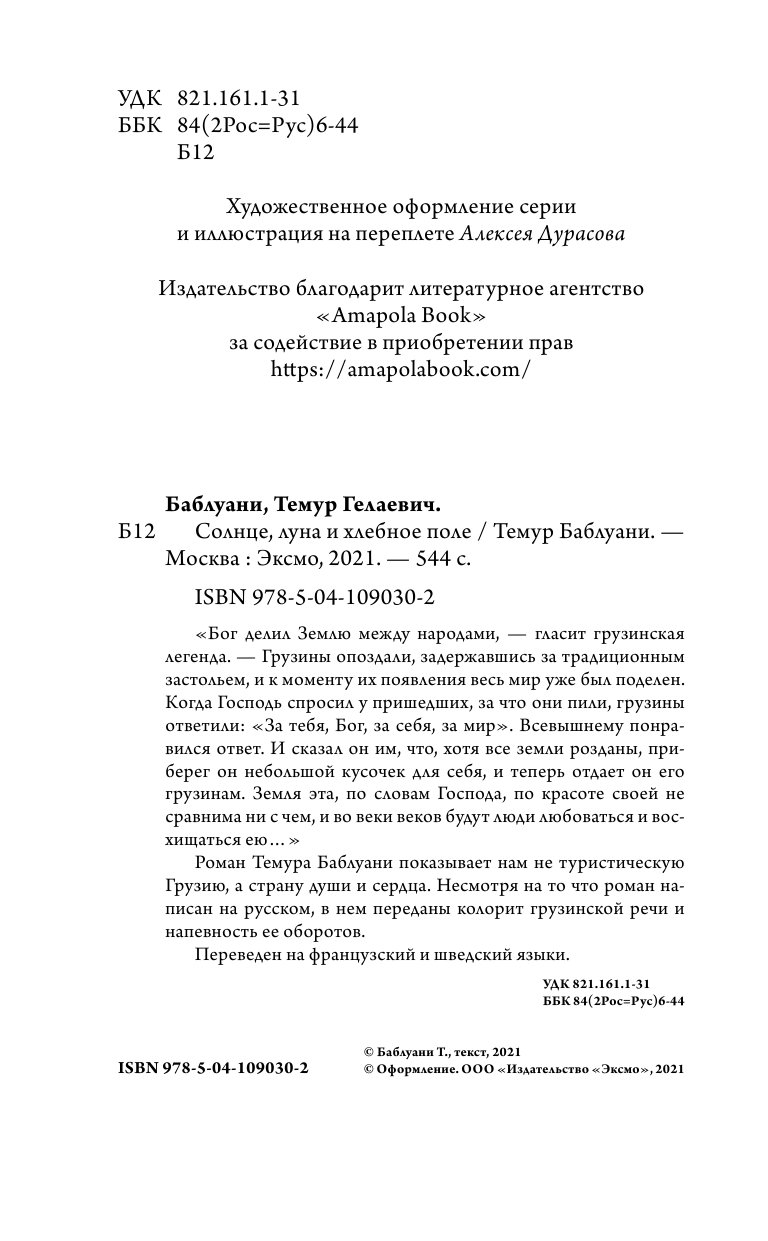 Солнце луна и хлебное поле (Темур Баблуани); ООО "Издательство "Эксмо", 2021
