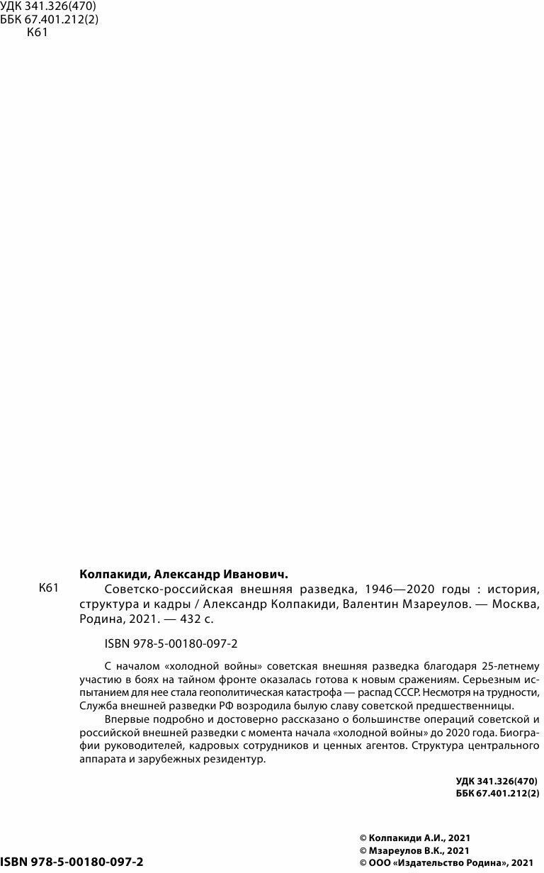 Советско-российская внешняя разведка. 1946 — 2020 годы. История структура и кадры (Александр Колпакиди); Эксмо, Редакция 1, 2021
