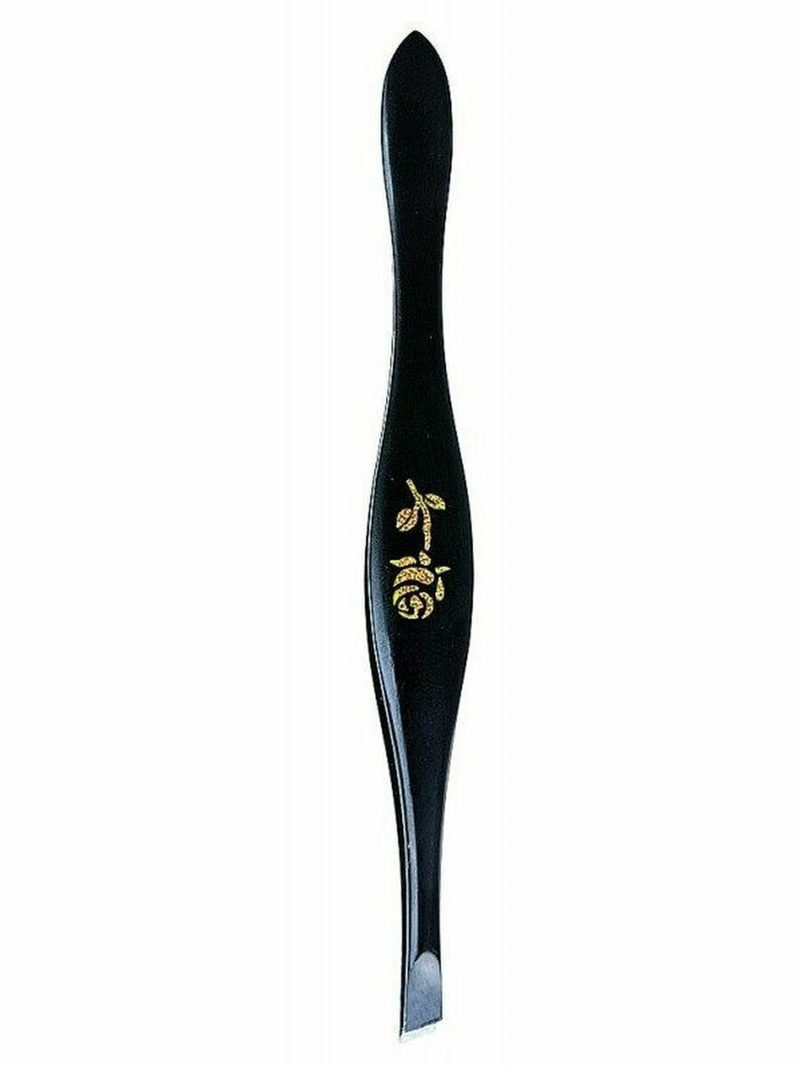 Пинцет для бровей Скошенный черный с розой Satine InterVion (1462686)