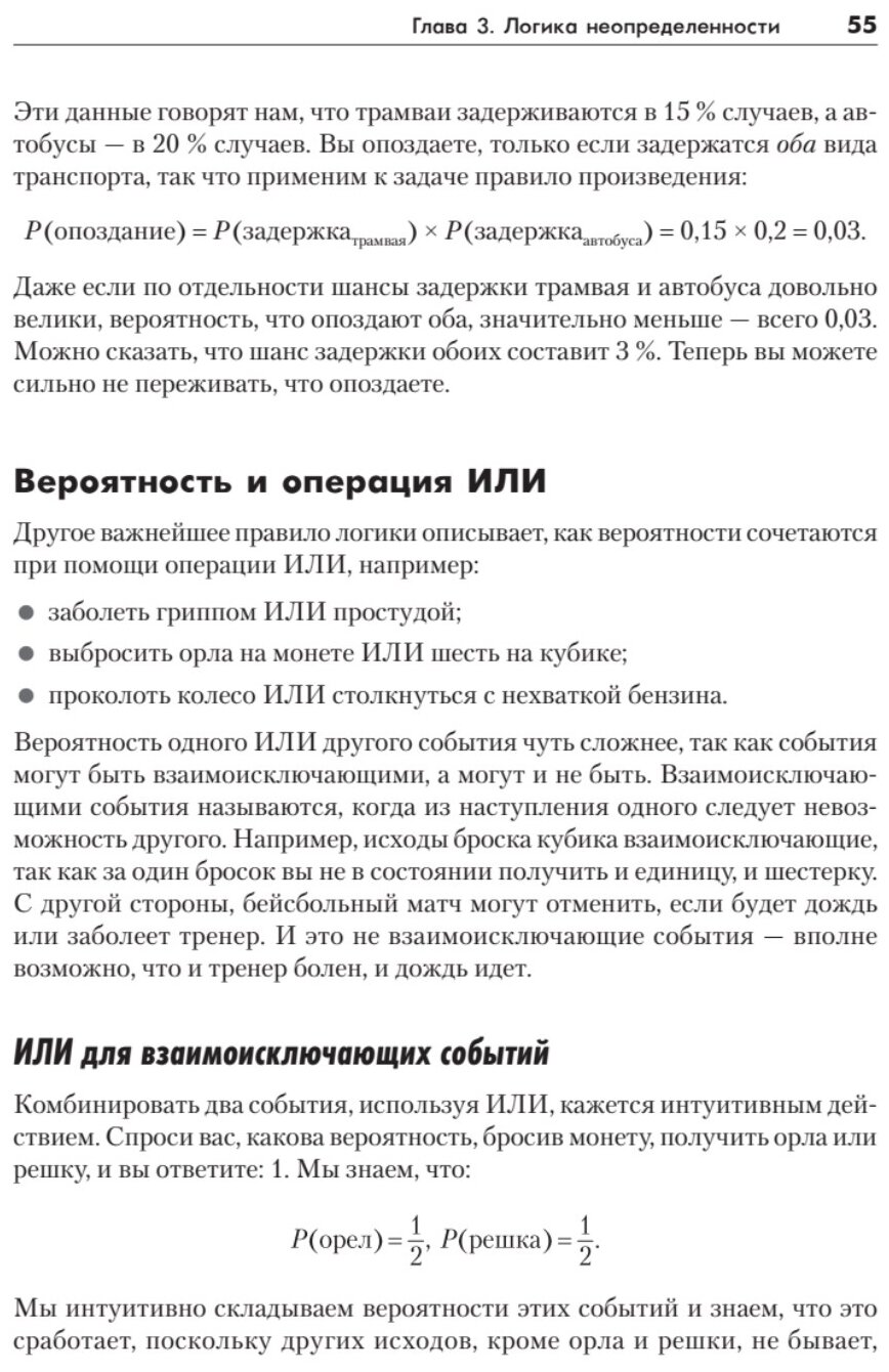 Важнейший плюс книги - автору удалось сделать последовательный материал в котором ничего не упущено, при этом он не считает вас настолько тупым, чтобы избегать формул и графиков. по ходу поговорит и о распределениях и о тервере, но ровно столько, чтобы не скатиться в унылые лекции. -