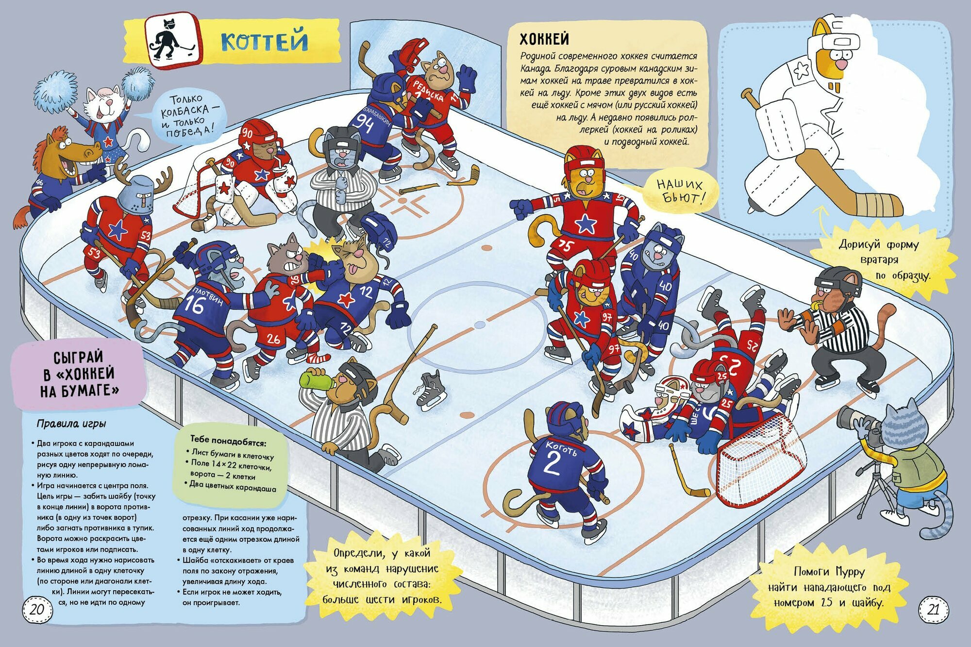 30 видов котоспорта с лабиринтами, искалками, рисовалками и идеями новых игр. Детям книга расскажет об основных олимпийских дисциплинах, заставит оторваться от гаджетов и взять в руки карандаши. А для взрослых на страницах книги спрятаны арт-пасхалки: попробуйте их отыскать.