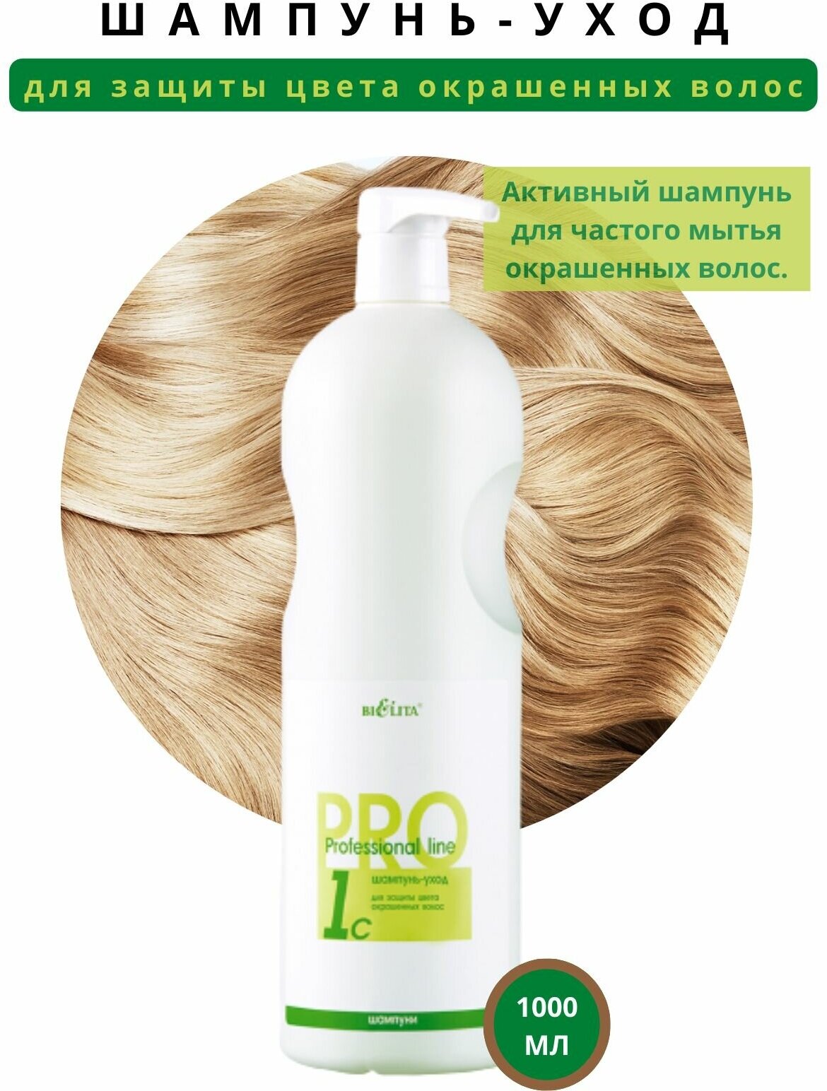 Шампунь-уход для защиты цвета окрашенных волос Professional Line Белита, 1000 мл Активный шампунь для частого мытья окрашенных волос. Основан на специальных кондиционерах, которые сохраняют и защищают стойкость окраски, придают волосам эластичность, блеск и восстанавливают поврежденную структуру наружного слоя волос. Целебные экстракты арники горной и древнейшего растения гинкго билоба поддерживают в здоровом состоянии кожу головы, увлажняют и усиливают блеск волос.