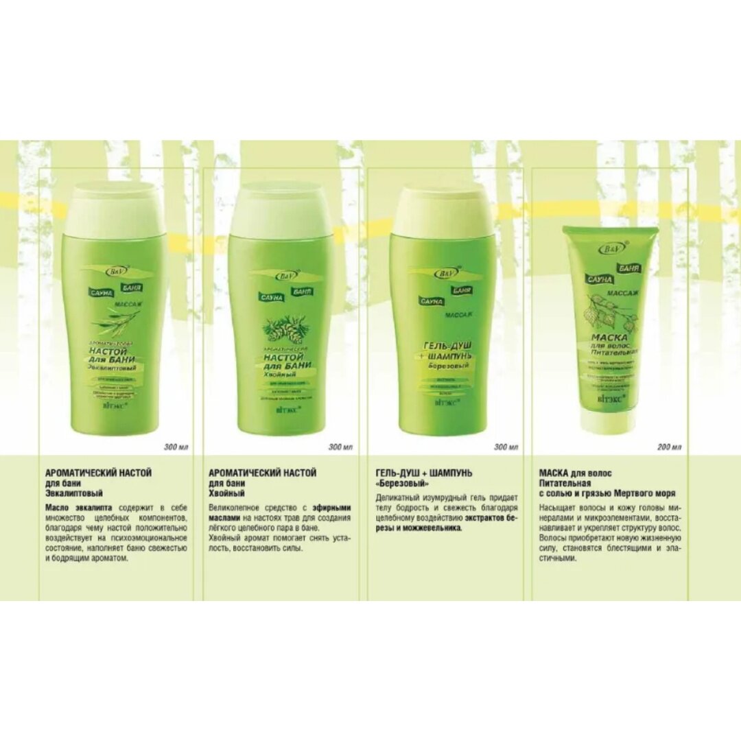 Специальное средство для мытья волос и тела в бане, сауне. Деликатный изумрудный гель не только тщательно очищает, но и поднимает настроение, общий тонус организма, благоприятно влияет на органы дыхания, придаёт телу бодрость и свежесть, благодаря целебному воздействию аромата берёзы и можжевельника.