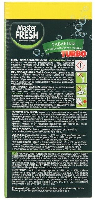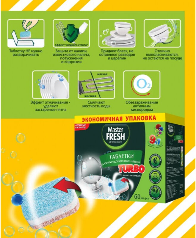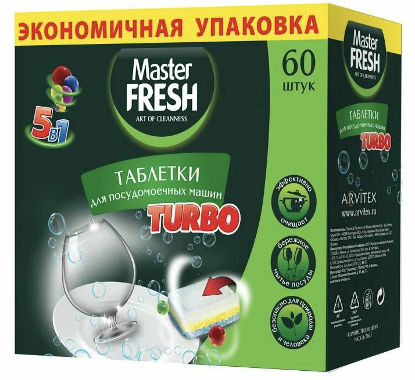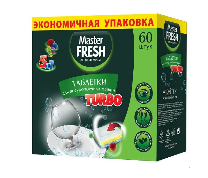 Таблетки для посудомоечных машин Master Fresh Turbo 5в1 60шт Turbo 9-В-1
