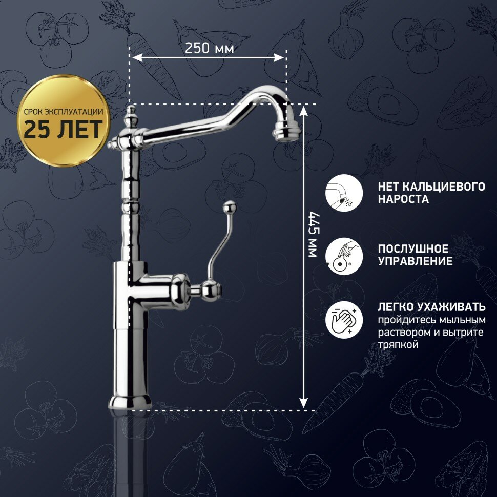 Смеситель для кухни Paini Duomo 88CR572LLKM - станет незаменимым помощником на кухне.
