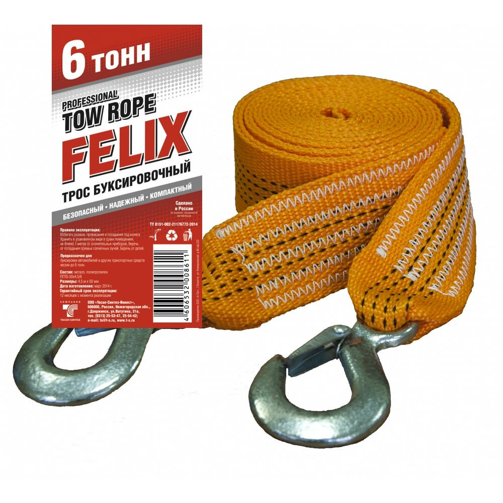 Трос буксировочный FELIX предназначен для надежного и безопасного буксирования автомобиля.Преимущества:• Крепкий качественный трос из полипропиленовой ленты, прочным литым крюком с надежным замком;