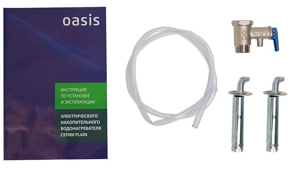 | Состав комплекта | Электрический водонагреватель - 1шт. Руководоство по эксплуатации - 1шт. Дренажная трубка - 1шт.Монтажный комплект - 1шт. Предохранительный клапан - 1шт. Упаковка - 1шт. |