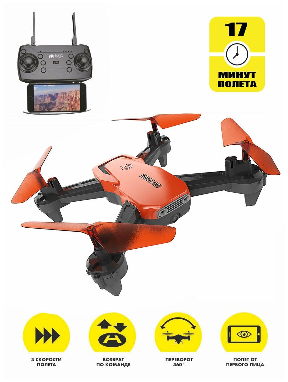 Квадрокоптер HIPER с камерой черный HQC-0030 Sky Patrol (черно-оранжевый) (размер: средний)