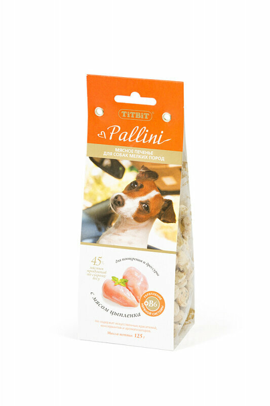 Лакомство для собак Titbit Печенье Pallini с цыпленком 0125 кг Pallini печенье с цыпленком, 125г
