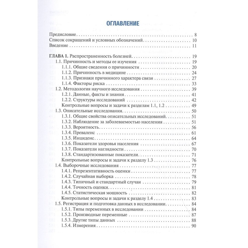 Учебник освещает фундаментальные аспекты современной эпидемиологии и биостатистики: проблемы причинности, измерений и вычислительного анализа, основные структуры исследований в медицине. Детально рассмотрены ключевые для медицины вопросы оценки диагностических и лечебных вмешательств, выявления и оценки последствий вредных воздействий. Изложены аспекты использования эпидемиологических методов в общественном здоровье и управлении здравоохранением.