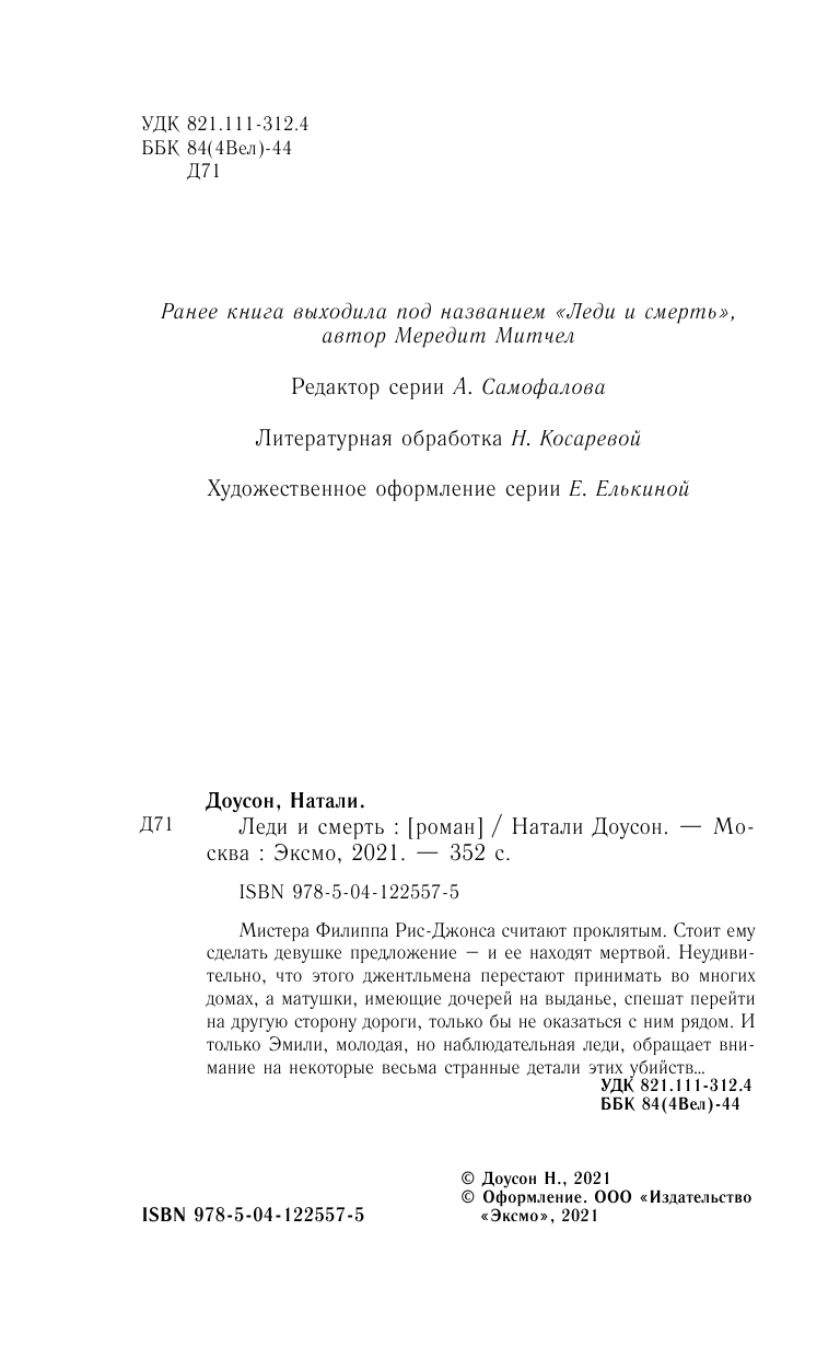 Книга: Леди и смерть (Натали Доусон); Эксмо, Редакция 1, 2021