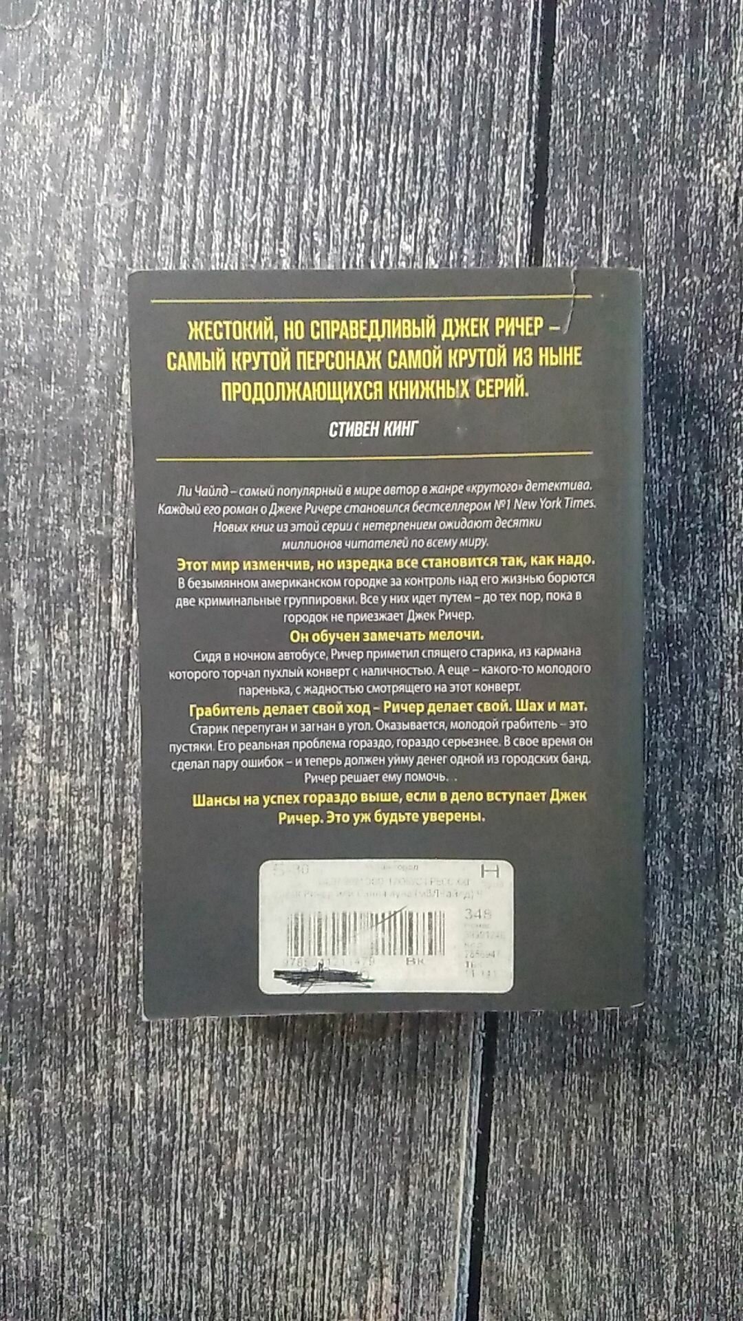 Начал читать Ли Чайлда давно . Первые романы о Джеке Ричере радовали сюжетом, подачей, основательностью. Сейчас дочитываю эту серию по инерции : истории трогают все меньше, а скрупулезность подачи скорее раздражает. Но почему-то все жду, что Чайлд прорвет эту невнятную и малоинтересную оболочку повседневности. Читать посоветую только тем, кто уже завяз в этой истории.