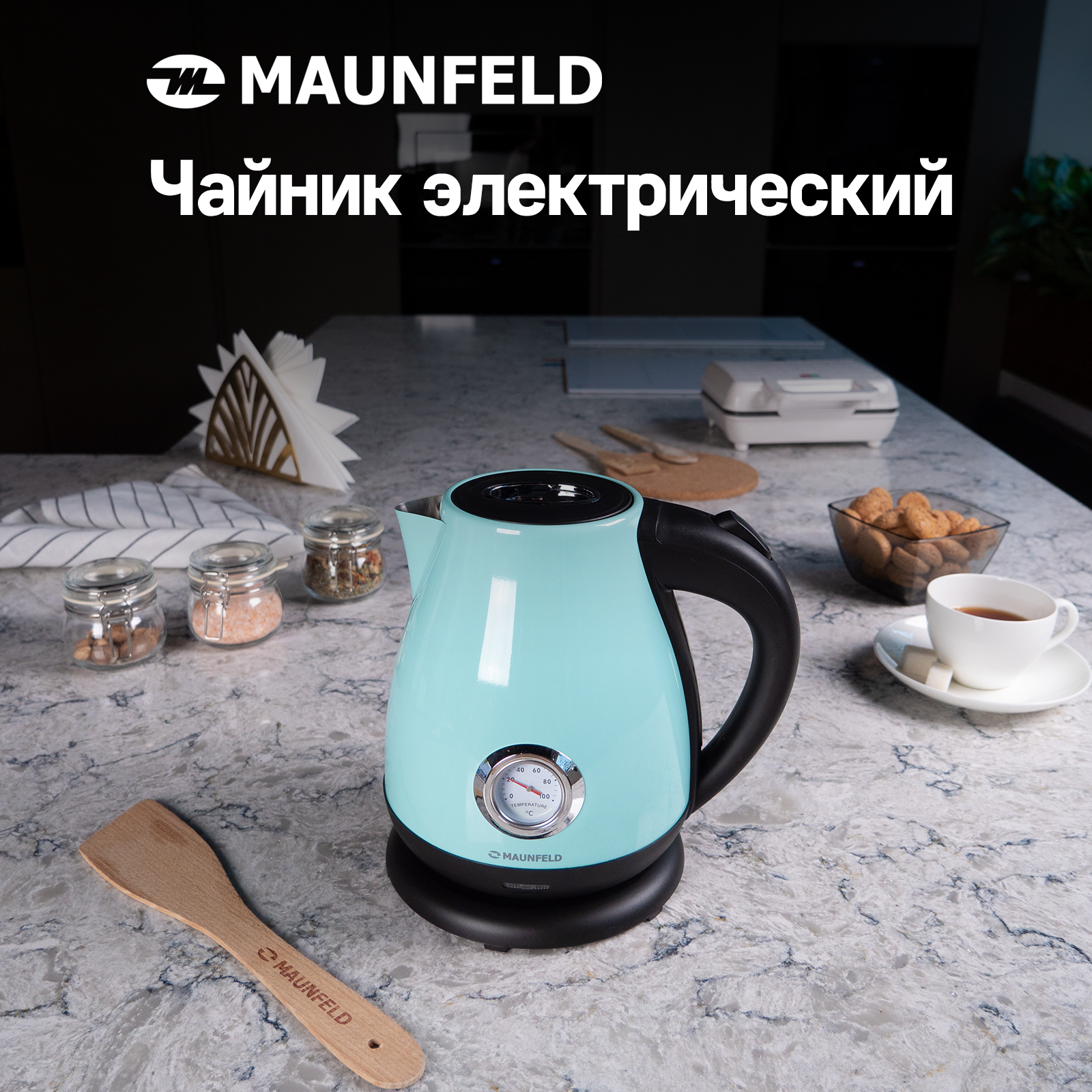 **Электрический чайник Maunfeld ** имеет непрозрачный корпус. Есть измеритель температуры воды в диапазоне от 0°C до 100°C. Предельная потребляемая мощность — 2200 Вт. Модель работает от сети переменного тока.