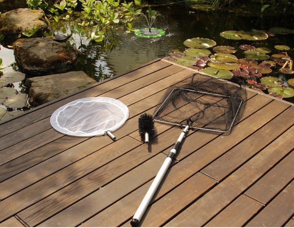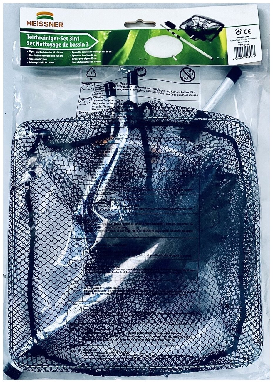 Набор для чистки пруда 3 в 1. Сетка для водорослей 36х36 см, очиститель поверхности круглый 36см, щетка от водорослей 13 см телескопическая ручка 55-150 см