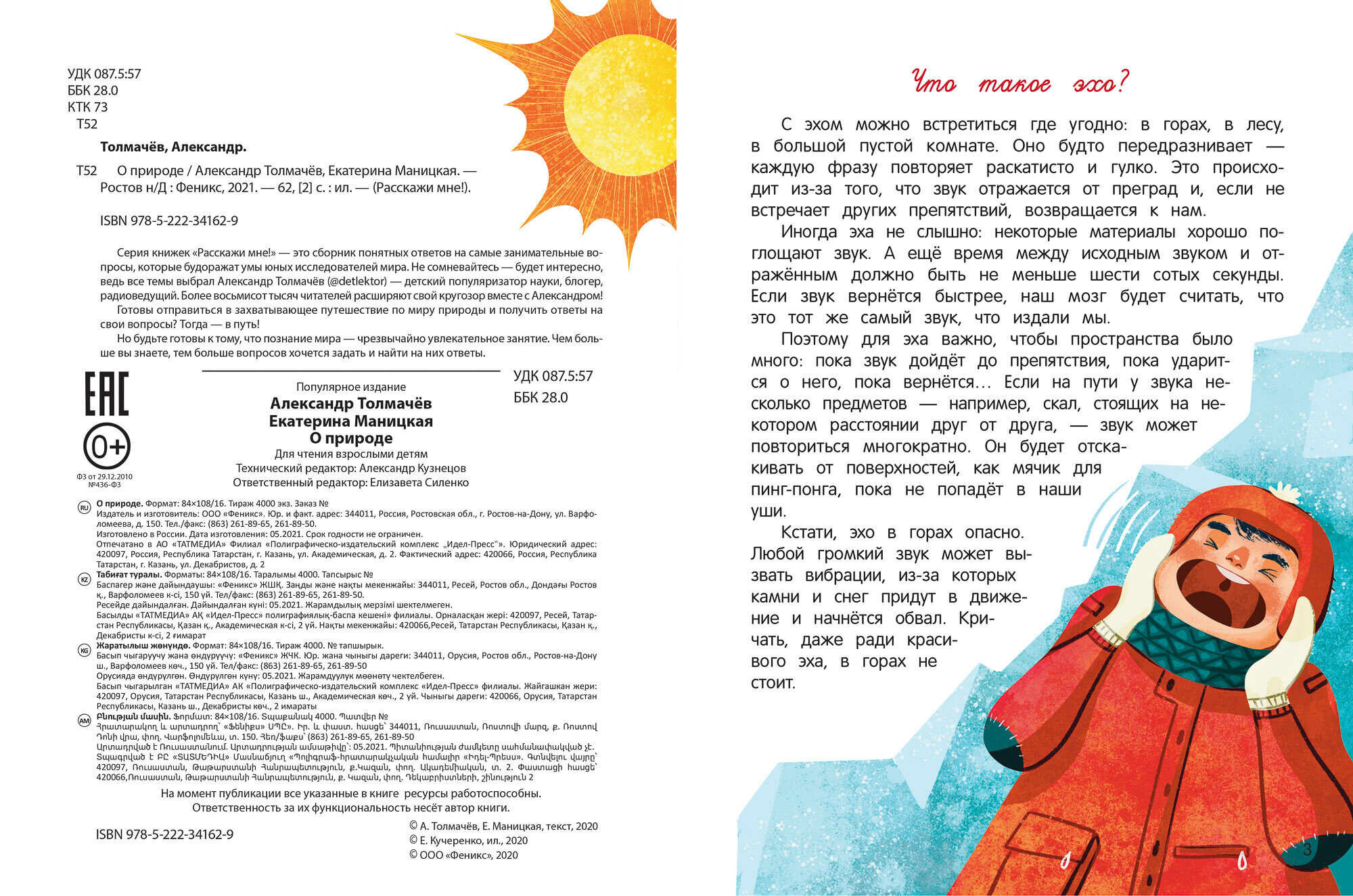 Книга: О природе (Маницкая Екатерина, Толмачев Александр Вячеславович); Феникс-Премьер, 2021