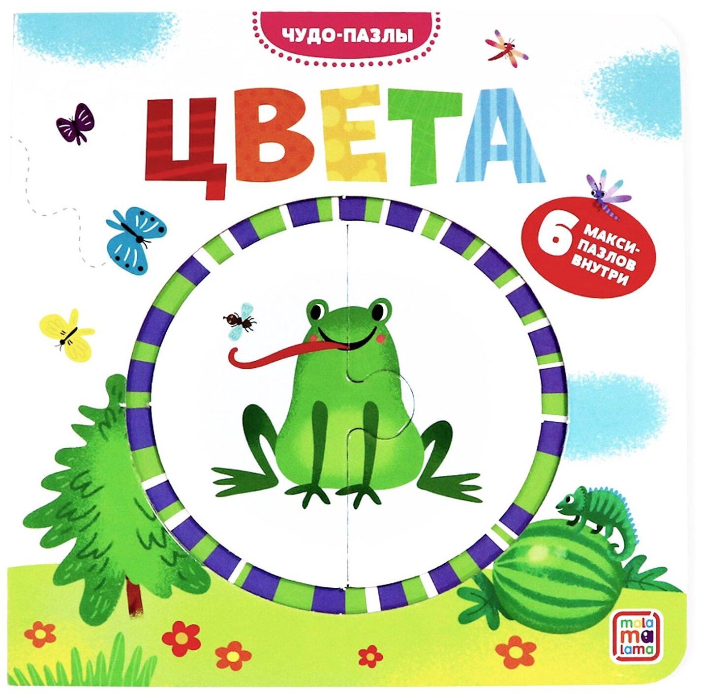 Чудо-пазлы. Цвета — это занимательная книжка с пазлами, на 12 страницах которой находятся весёлые стихи и 6 макси-пазлов. Ребёнок сможет легко извлечь такие пазлы благодаря выемке для детских пальчиков. Яркая и контрастная печать делает картинки максимально насыщенными. Страницы издания изготовлены из качественного и плотного картона. Размер книги — 160*160 мм.