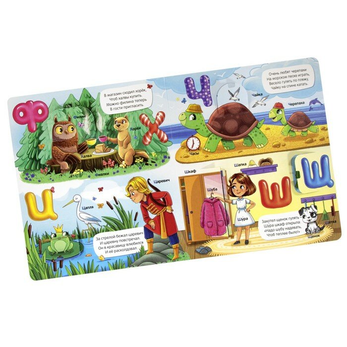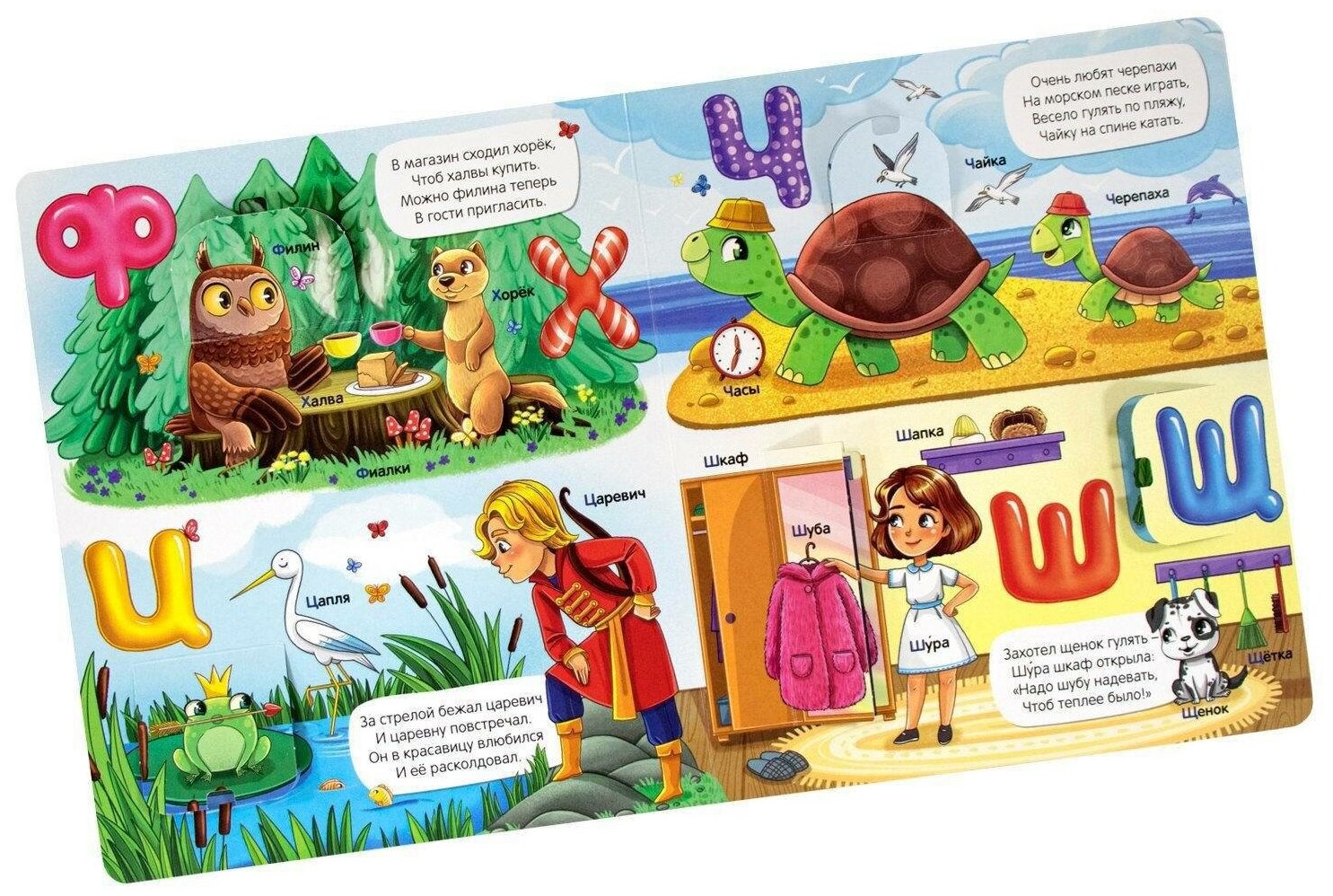 Учим буквы, слоги, слова с книжкой АЗБУКА. Книжка с окошками. 01