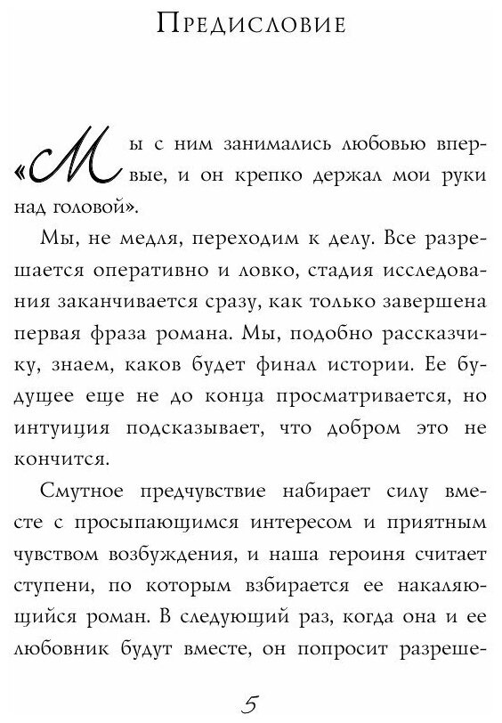 Книга написана под псевдонимом. Это мемуары Ингеборы Дей, матери-одиночки из Нью-Йорка. Однажды она встречает мужчину, который меняет ее восприятие секса и сексуальности. Днем она успешный редактор, сама решает свои проблемы и принимает решения, а ночью позволяет ему контролировать все. Он кормит ее с рук, связывает, выбирает ей одежду. Книга очень чувственная, в ней много эротических сцен. Однако со временем, его желания становятся все более изощренными и девушка уже не может этого выдержать.
