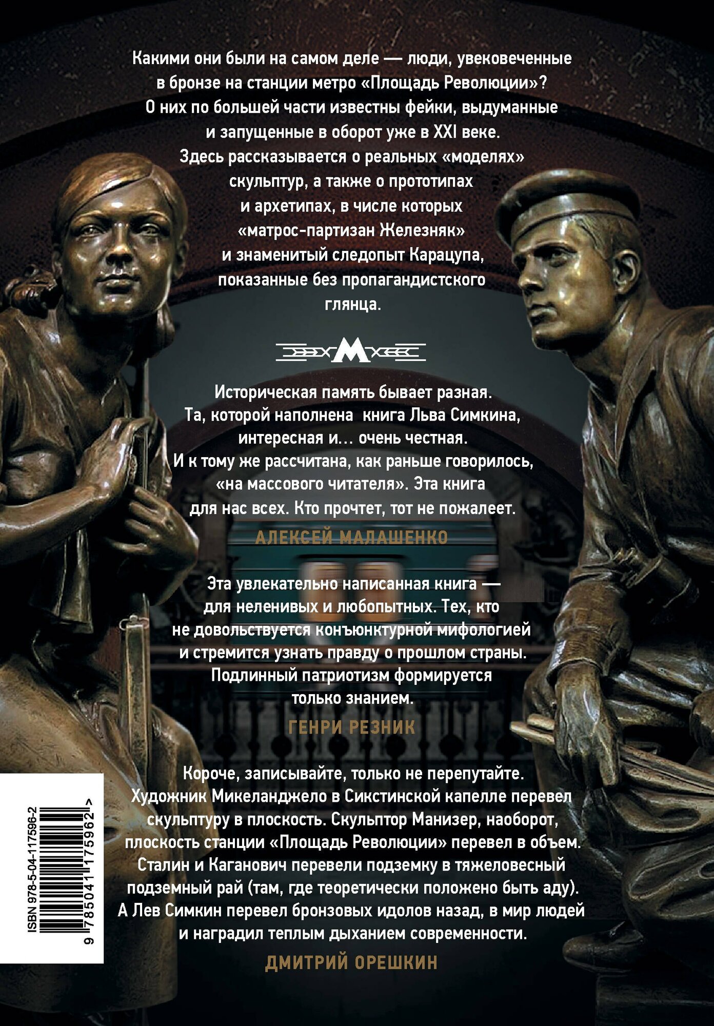 Какими они были на самом деле - люди, увековеченные в бронзе на станции метро "Площадь революции"? О них по большей части известны фейки, выдуманные и запущенные в оборот уже в XXI веке. Здесь рассказывается о реальных "моделях" скульптур, а также о прототипах и архетипах, в числе которых "матрос-партизан Железняк" и знаменитый следопыт Карацупа, показанные без пропагандистского глянца. Книга иллюстрирована фотографиями прошлых лет.