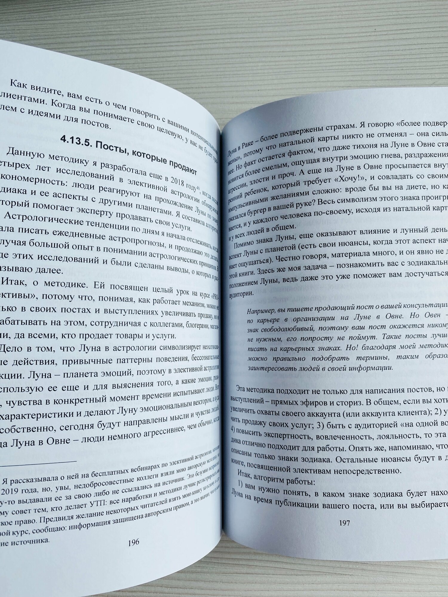 Ps. Помимо реально полезных советов по продвижению, можно подчерпнуть для себя и лайфхаки из сферы элективов, и трактовок аспектов. Огонь же! Мой вердикт – очень полезная книга! -