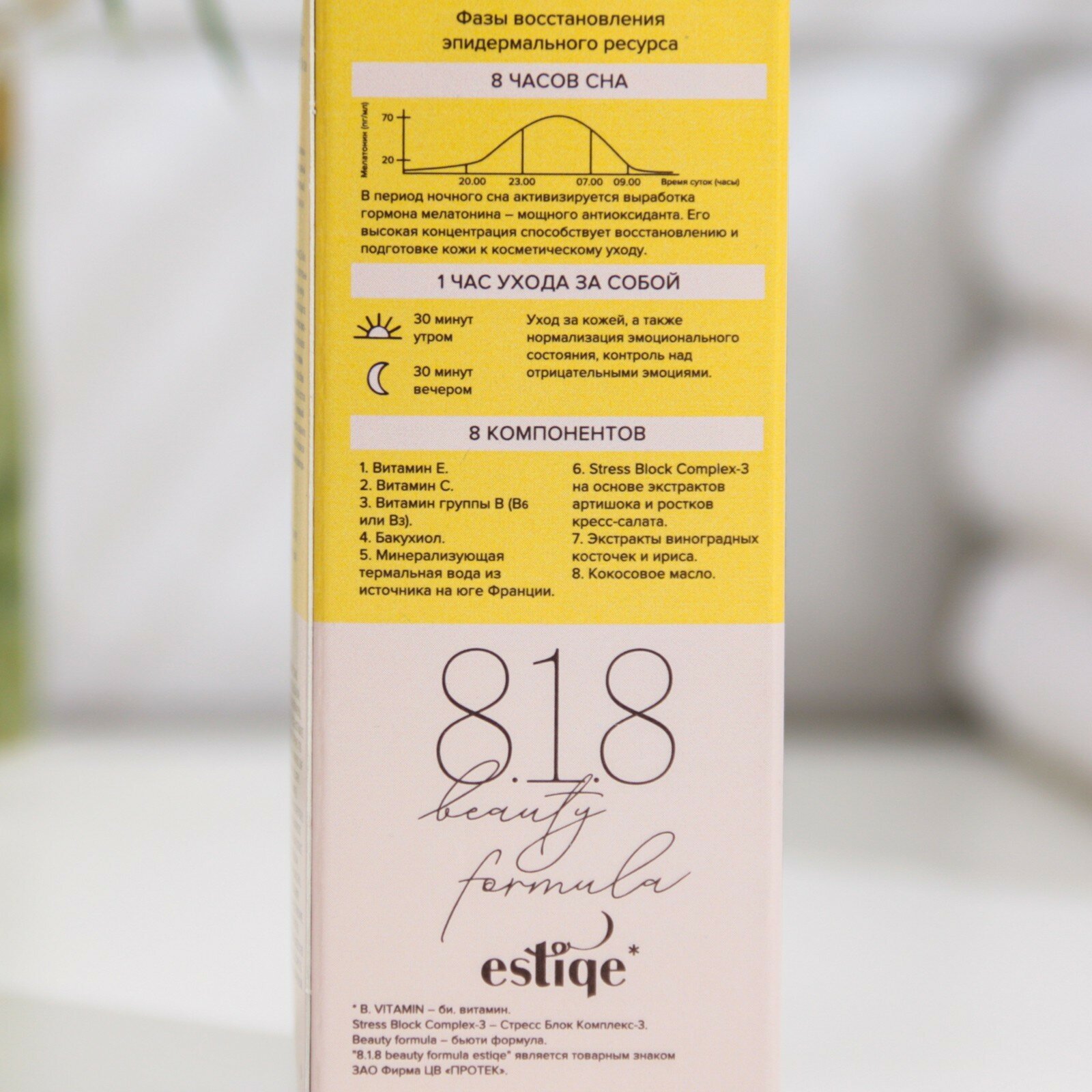 | Состав | миндальное масло; кокосовое масло; пептидный комплекс; масло ши; экстракт зеленого чая; термальная вода; комплекс витаминов; экстракт ириса; экстракты виноградных косточек; бакухиол |
