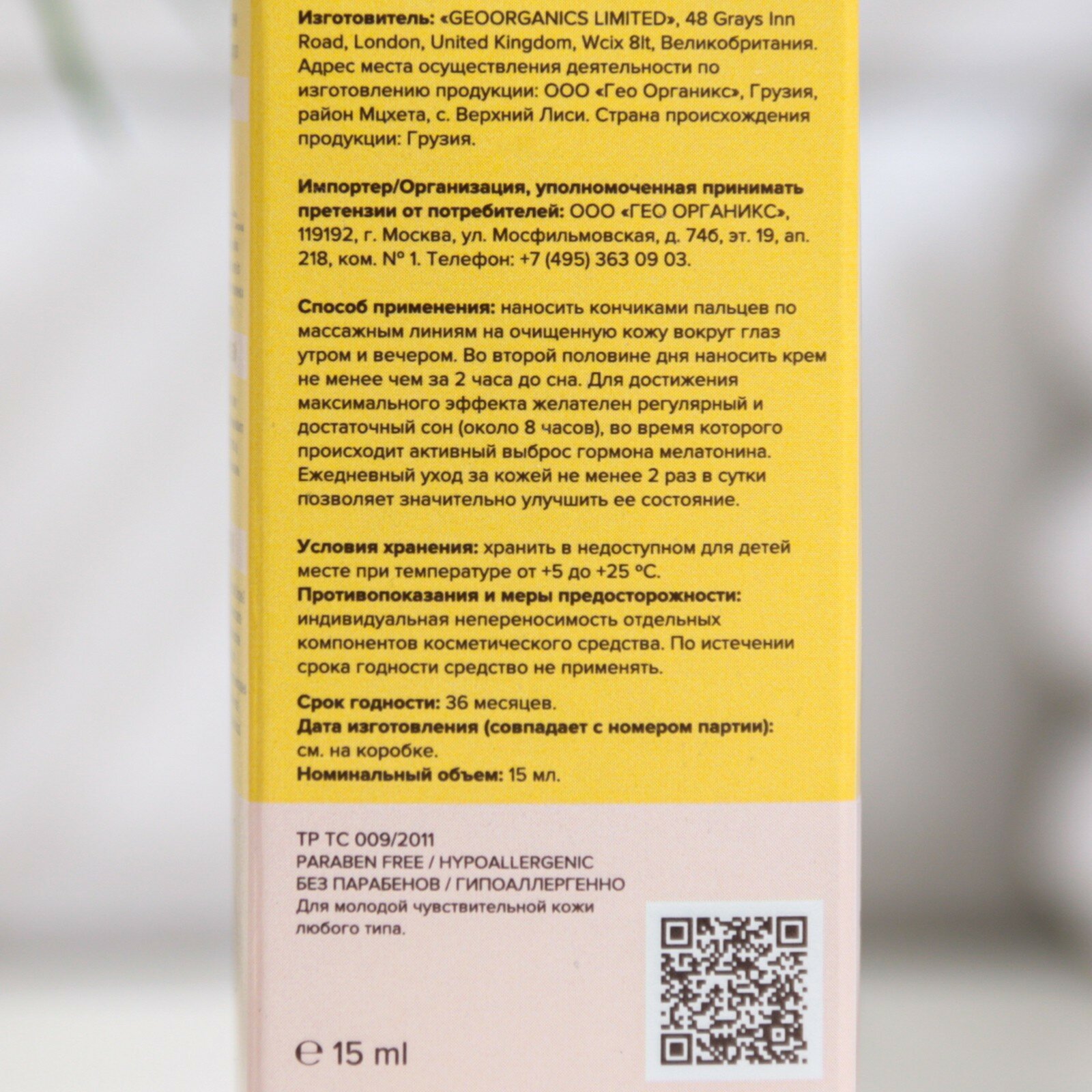 | Форма выпуска | крем для кожи вокруг глаз |