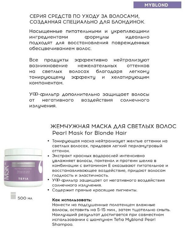 Tefia Жемчужная маска для светлых волос 250 мл (Tefia ) (ЭХ99989408902)