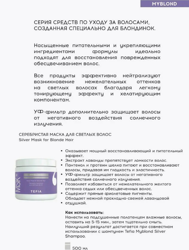 Сервис сравнения цен СкидкаГИД предлагает сравнить цены на товар «Tefia Серебристая маска для светлых волос 500 мл (Tefia ) (ЭХ99989408891)»