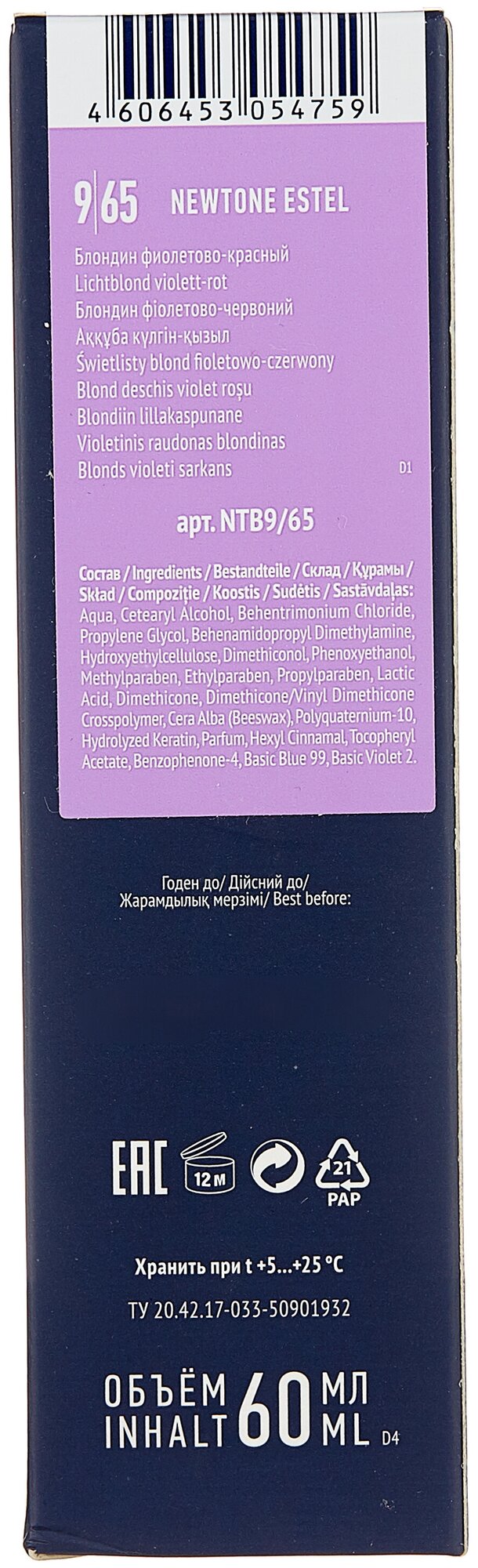Состав: aqua, cetearyl alcohol, behentrimonium chloride, propylene glycol, behenamidopropyl dimethylamine, hydroxyethylcellulose, dimethiconol, phenoxyethanol, methylparaben, ethylparaben, propylparaben, lactic acid, dimethicone, dimethicone vinyl dimethicone crosspolymer, cera alba (beeswax), polyquaternium-10, hydrolyzed keratin, parfum, hexyl cinnamal, tocopheryl acetate, benzophenone-4, acid violet 43, acid red 92, disperse violet 12