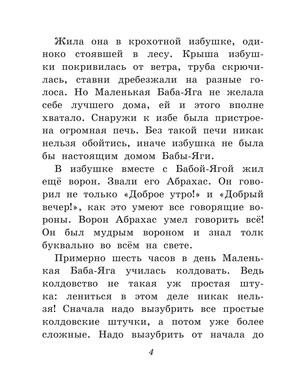 После школы всегда читала эту книгу. Очень нравилось мне, что Баба-Яга в сказке добрая. И вместе со своим верным другом вороном Абрахасом делает хорошие дела и помогает другим.