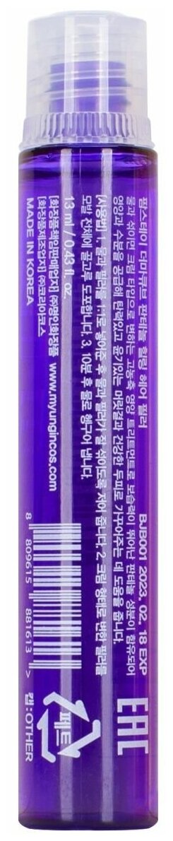 | Состав | propylene glycol; alcohol; myristyl alcohol; water; cyclopentasiloxane; steartrimonium chloride; cetrimonium chloride; behentrimonium chloride; sodium lactate; fragrance; linalool; hexyl cinnamal; citronellol; alpha-isomethyl ionone; limonene; isopropyl alcohol; menthol; salicylic acid; hydrolyzed collagen; hydrolyzed silk; glycerin; phenoxyethanol; 1; 2-hexanediol; butylene glycol; tocopheryl acetate; arginine; centella asiatica extract; aloe barbadensis leaf extract; panthenol(1.300ppm) |