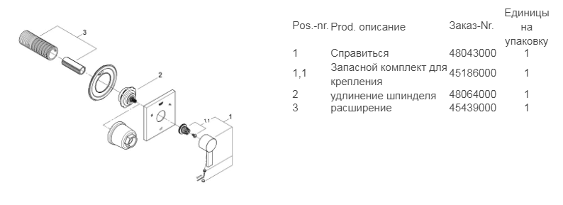| Особенности, совместимость | комплект верхней монтажной части для 29033000 без встраиваемого механизма |