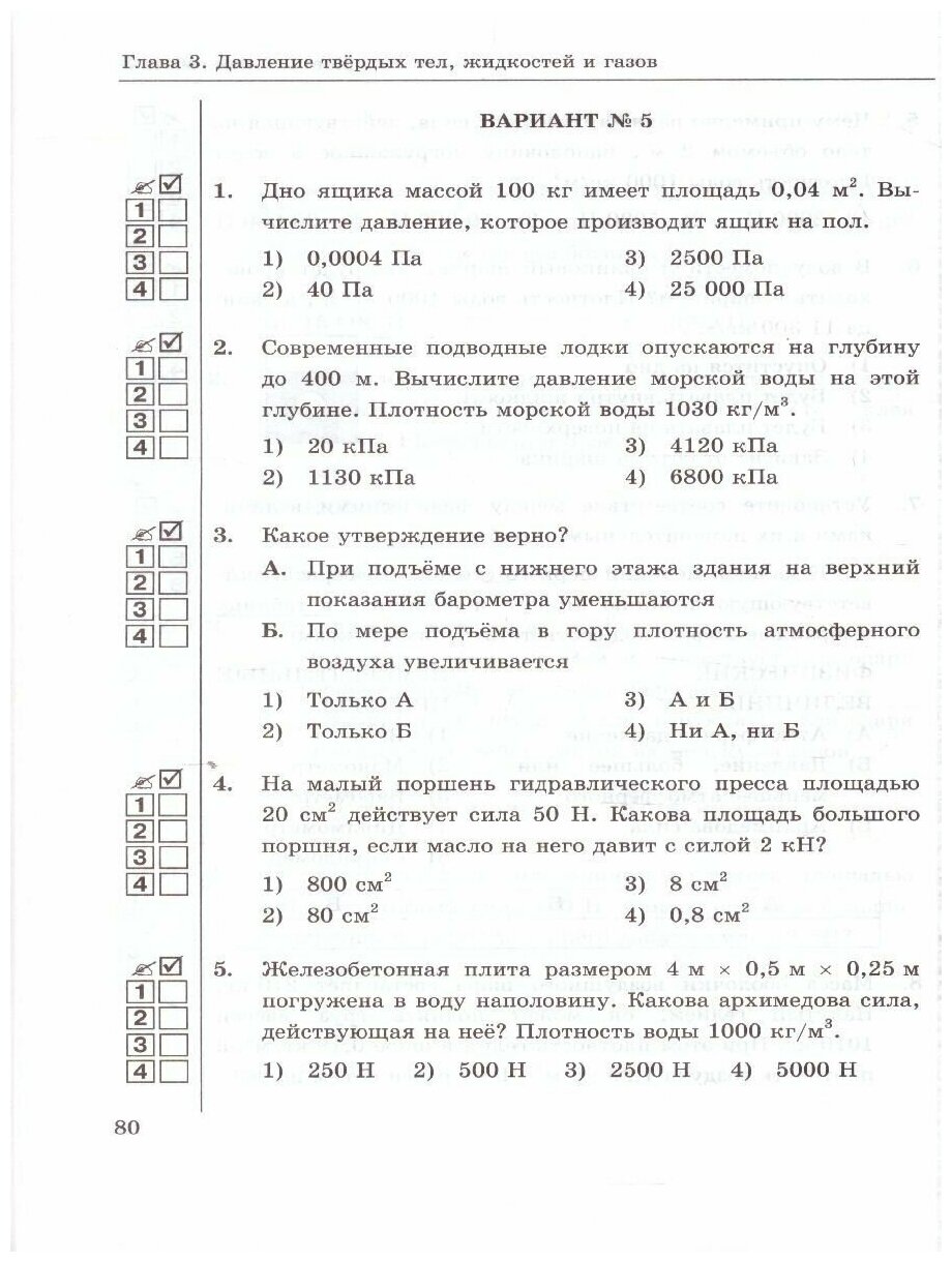 Издание предназначено для проверки знаний учащихся по курсу физики 7 класса. Оно ориентировано на учебник А. В. Перышкина "Физика. 7 класс" и содержит контрольные работы по всем темам, изучаемым в 7 классе, а также самостоятельные работы.